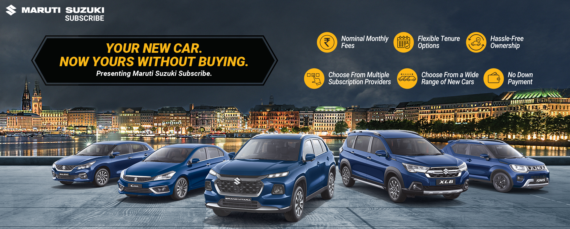 Maruti Suzuki Subscribe enables all customers to enjoy driving their preferred Maruti Suzuki cars without having to deal with all the financial responsibilities that come with owning a car.All you need to do is opt for a monthly subscription plan at a fixed monthly fee, which includes the routine maintenance and insurance costs, and choose a flexible tenure. At Competent Automobiles in, Dilshad Garden, New Delhi, all Hatchback, Sedan, SUV, the MUV models line-up includes Baleno, Invicto, EVitara, Jimny, Ciaz, Ignis, Fronx, Grand Vitara, XL6. Here, you will enjoy Maruti Suzuki Subscribe benefits such as: